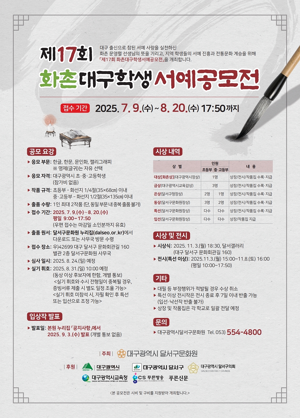 달서구문화원 제17회 화촌대구학생 서예공모전