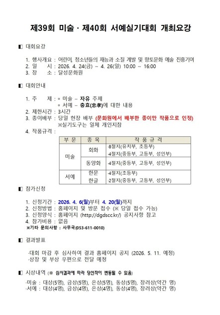 달성문화원 제39회 미술 · 제40회 서예 실기대회 개최